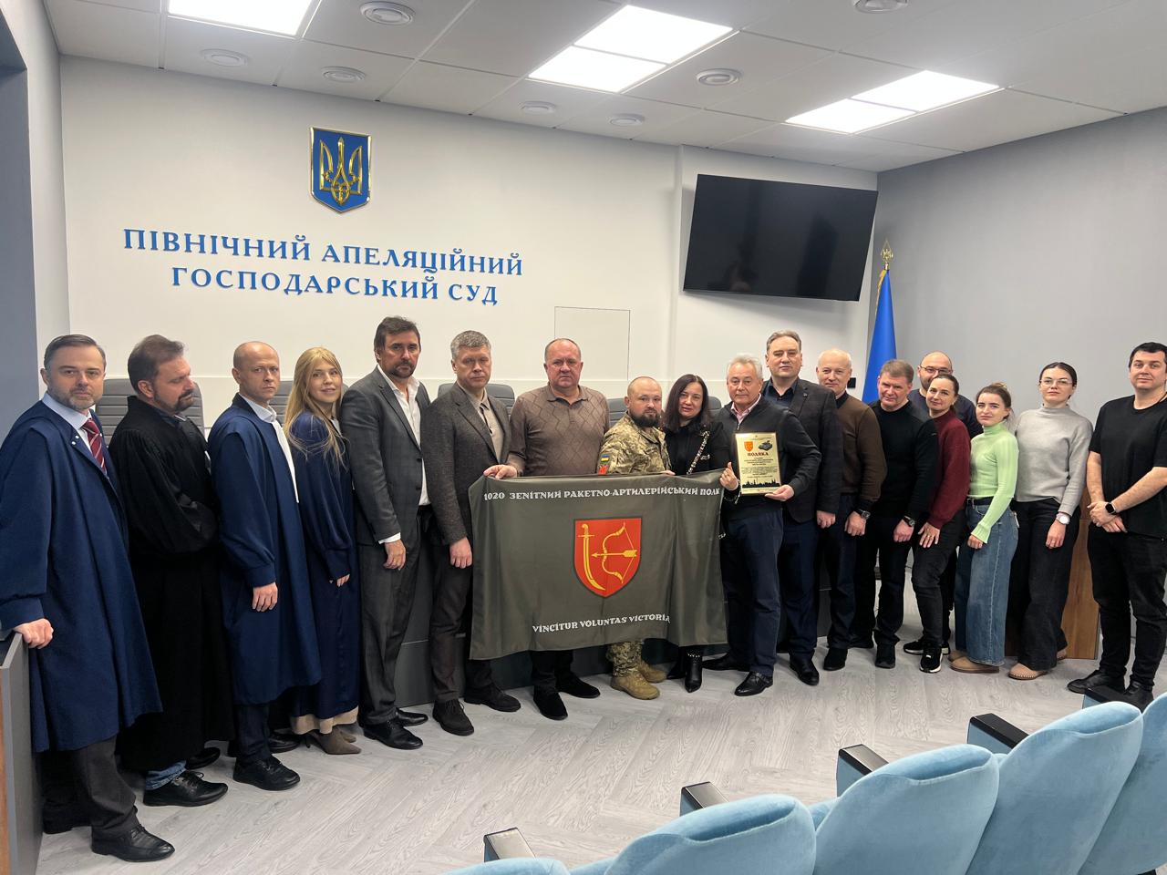 Бойові стяги підрозділів, прапори, розписані побажаннями українських героїв, і суворі сови ГУР, які дивляться на відвідувача з відзнак за підписом Кирила Буданова. Це — експозиція «Разом до Перемоги! Разом ми сильні!», яка зустрічає всіх відвідувачів Північного апеляційного господарського суду (ПАГС). Усі експонати — подарунки від підрозділів, яким допомагає суд. Судді та працівники суду, починаючи з 2014 року, активно підтримують ЗСУ волонтерською допомогою для забезпечення військових мотиваційними прапорами та символікою, транспортними засобами, необхідним обладнанням, зокрема бронежилетами, радіостанціями, дронами, зарядними станціями, засобами РЕБ, обігрівачами тощо.