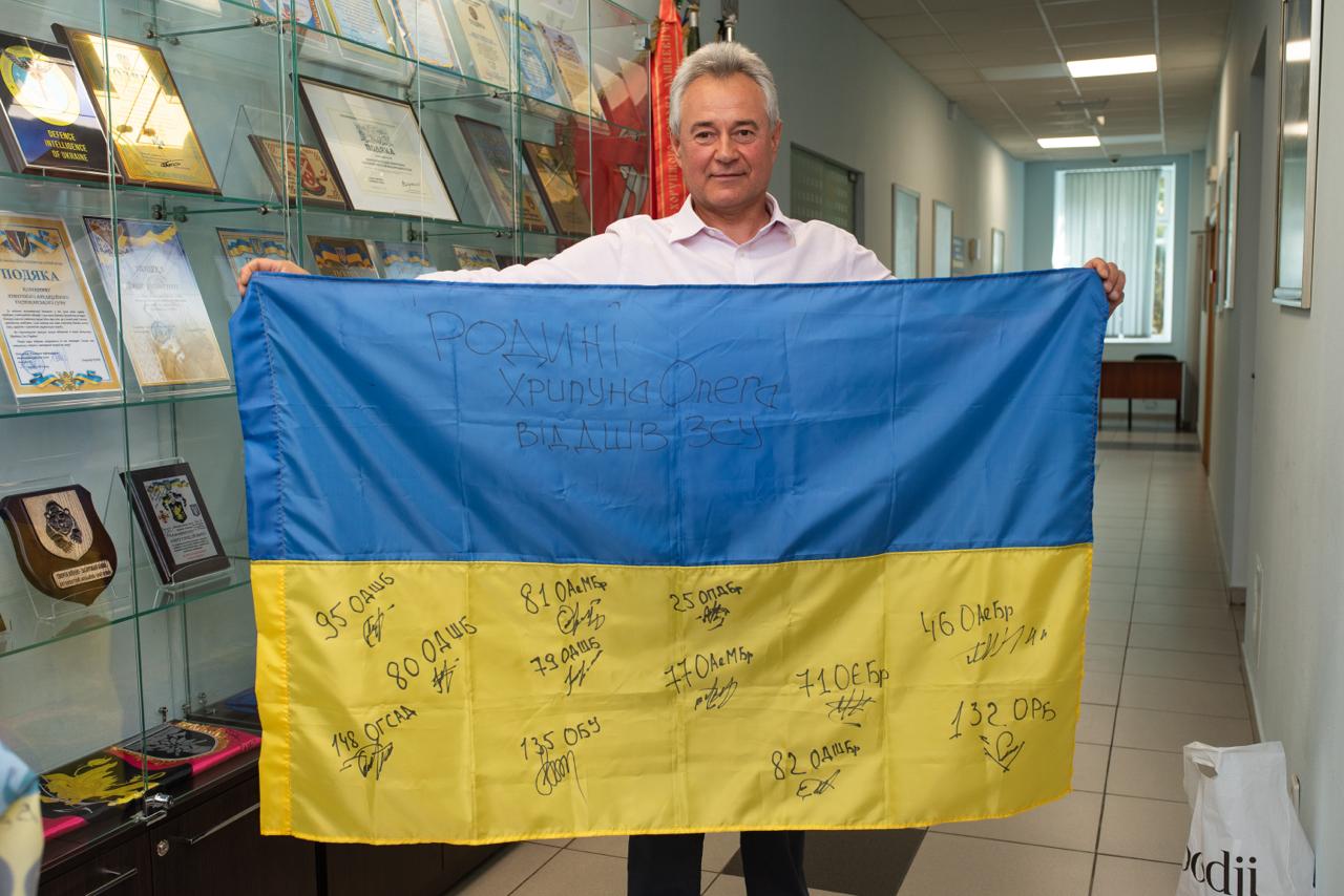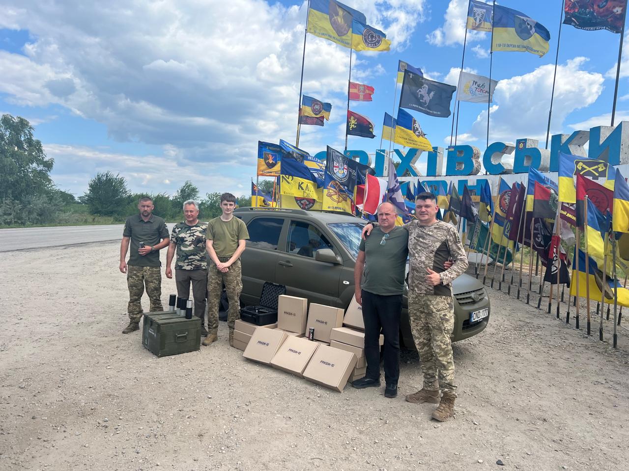 Крім грошової допомоги, ми продовжили займатися мотиваційними прапорами та футболками, а також опанували інші напрямки благодійництва — придбання та ремонт автомобілів, виготовлення дронів, обігрівачів, закупівлю касок, бронежилетів, медичних препаратів, паливно-мастильних матеріалів, зарядних станцій, засобів зв’язку, різноманітного обладнання, засобів РЕБ тощо. Багато вихідних та днів відпусток Олег Хрипун та його колега Анатолій Майданевич проводили в прифронтових районах, максимально близьких до зони бойових дій.