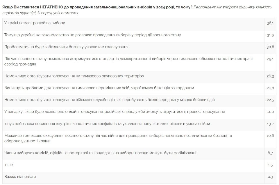 Майже дві третини українців (63,8%) не підтримують ідею проведення загальнонаціональних виборів в Україні до завершення війни.