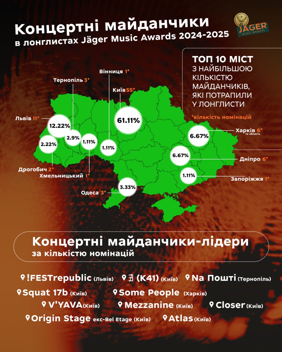 Премія української незалежної музики Jäger Music Awards від бренду Jägermeister презентувала дослідження лонглистів за три роки щодо тенденцій в українському андеграунді.