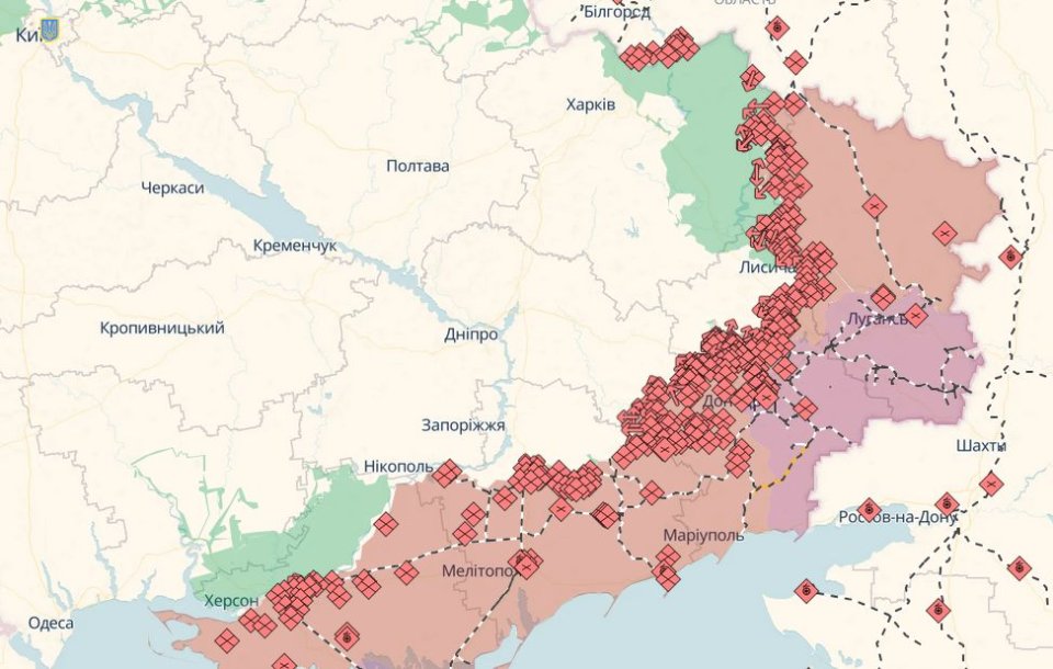 Стежити за змінами лінії фронту в Україні можна за допомогою онлайн-карти Deep State. На ній синім кольором позначена територія, звільнена за два останні тижні; зеленим — раніше звільнена територія; червоним — окупована територія; рожевим — територія, що потребує уточнення.