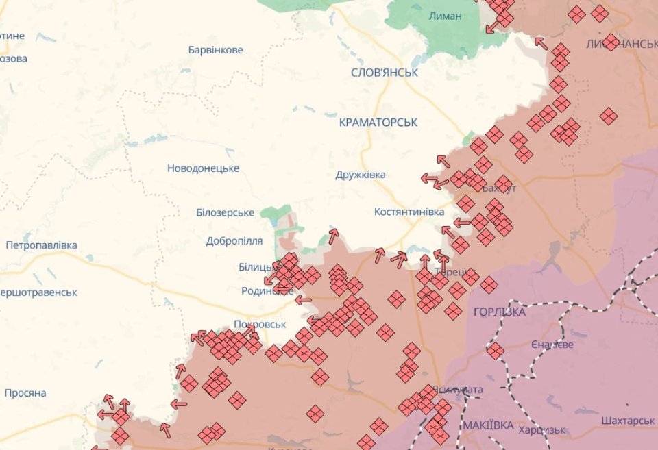 Стежити за змінами лінії фронту в Україні можна за допомогою онлайн-карти Deep State. На ній синім кольором позначена територія, звільнена за два останні тижні; зеленим — раніше звільнена територія; червоним — окупована територія; рожевим — територія, що потребує уточнення.