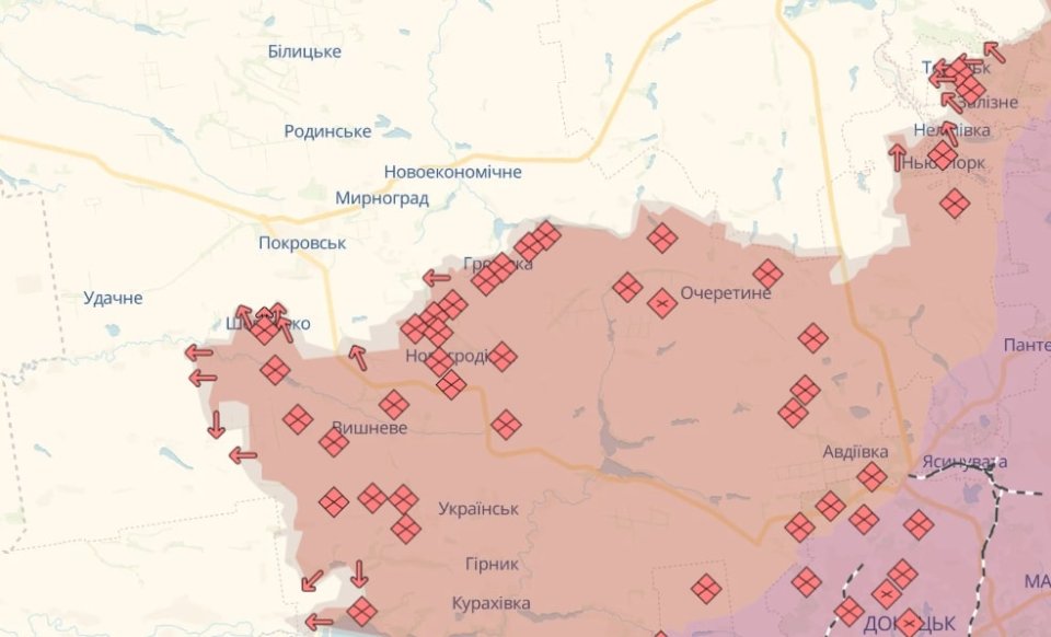 На Покровському напрямку наші захисники зупинили 62 наступальні дії агресора у бік населених пунктів Миролюбівка, Лисівка, Промінь, Даченське, Шевченко, Новий Труд, Зелене, Піщане та Пушкіне.