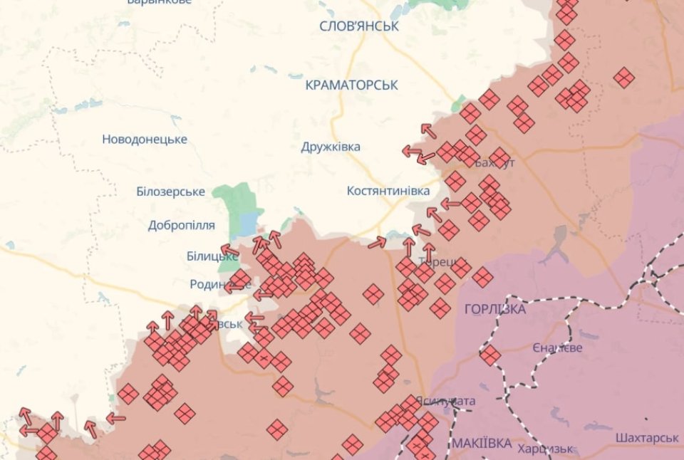 Стежити за змінами лінії фронту в Україні можна за допомогою онлайн-карти Deep State. На ній синім кольором позначена територія, звільнена за два останні тижні; зеленим — раніше звільнена територія; червоним — окупована територія; рожевим — територія, що потребує уточнення.