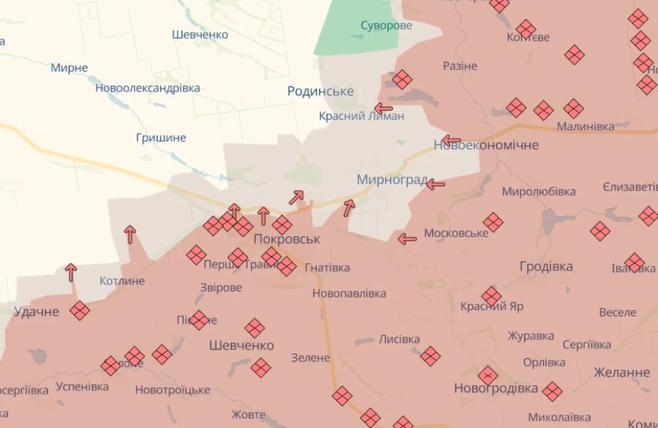 Від початку доби на Покровському напрямку російські підрозділи 50 разів намагалися прорвати українську оборону у районах населених пунктів Шахове, Панківка, Никанорівка, Мирноград, Родинське, Покровськ, Котлине, Удачне, Новосергіївка та Дачне. Три бойові зіткнення тривають дотепер.