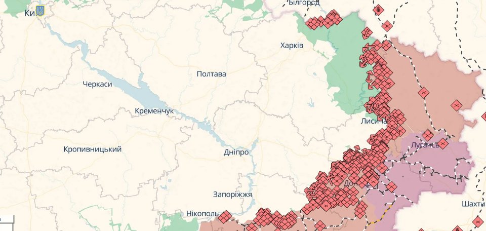 Стежити за змінами лінії фронту в Україні можна за допомогою онлайн-карти Deep State. На ній синім кольором позначена територія, звільнена за два останні тижні; зеленим — раніше звільнена територія; червоним — окупована територія; рожевим — територія, що потребує уточнення.