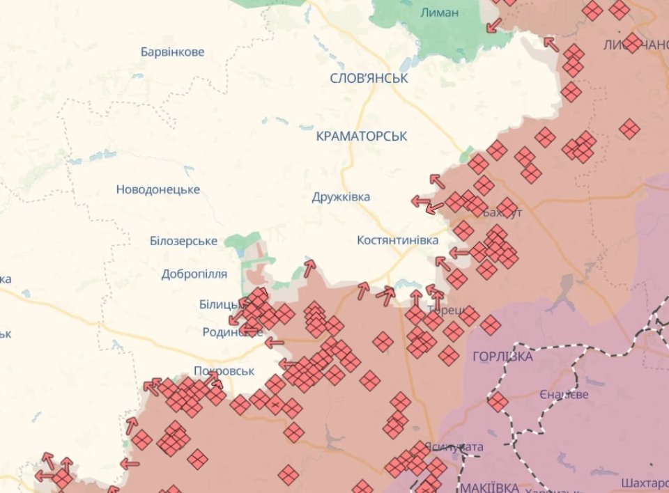 Стежити за змінами лінії фронту в Україні можна за допомогою онлайн-карти Deep State. На ній синім кольором позначена територія, звільнена за два останні тижні; зеленим — раніше звільнена територія; червоним — окупована територія; рожевим — територія, що потребує уточнення.