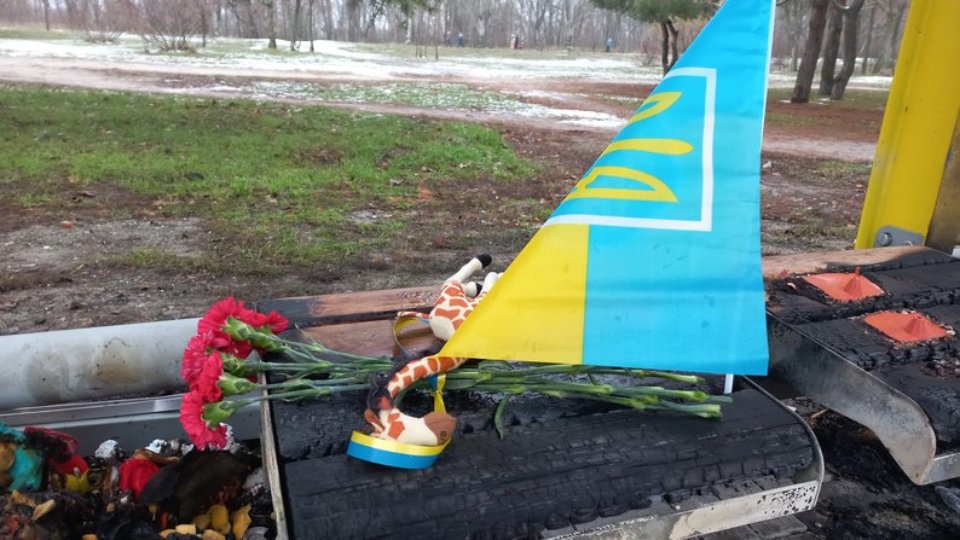 До «народного меморіалу» місцеві вже принесли нову іграшку, прапор та квіти.
