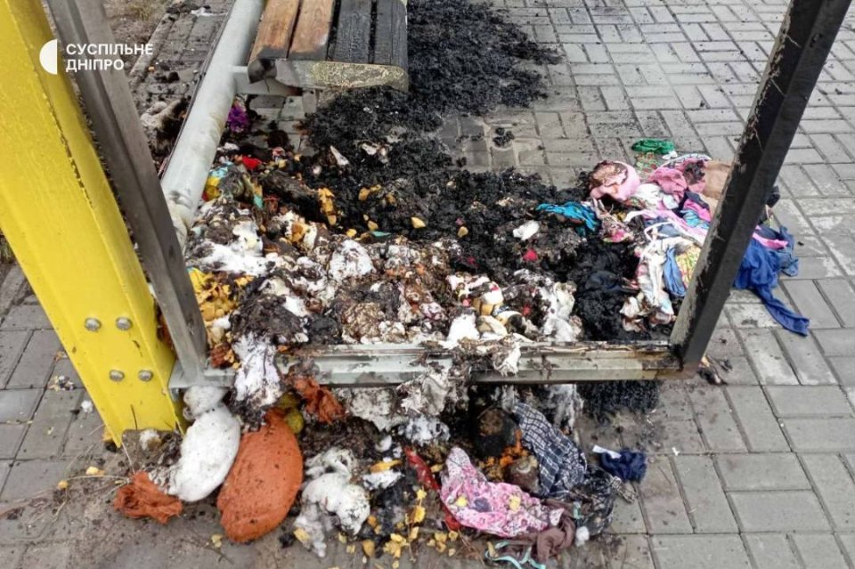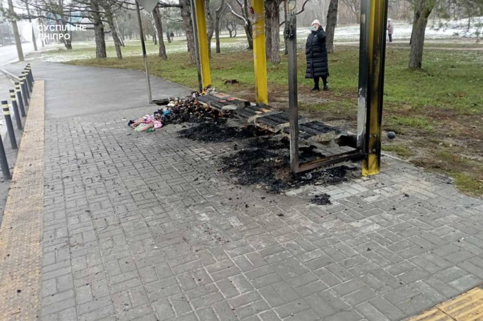 Внаслідок пожежі також пошкоджена зупинка, на якій був облаштований «меморіал». Згоріли сидіння та дах.
