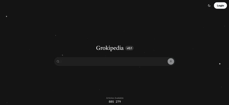 Стартова сторінка Grokipedia — мінімалістична. На ній лише: